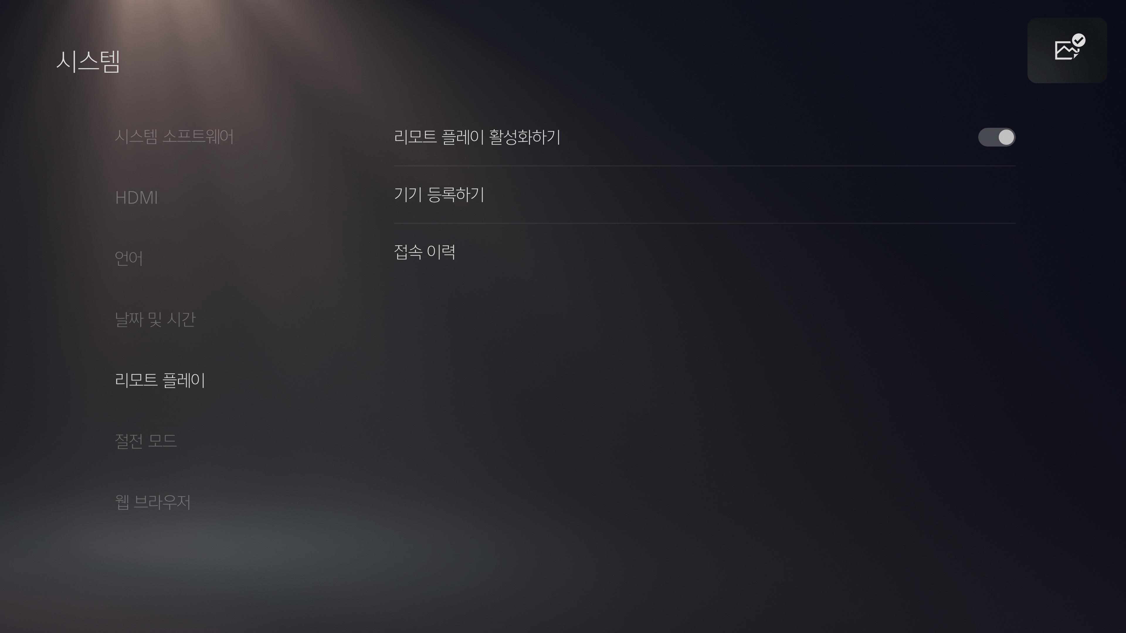 설정-시스템-리모트 플레이를 활성화해준다.