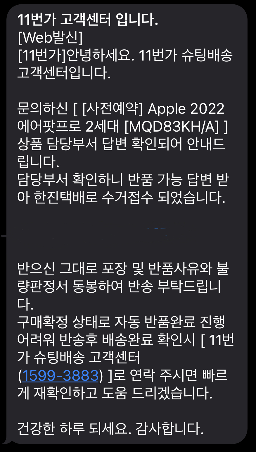 11번가 에어팟 프로 2세대 충전 케이스 불량, 환불 (완료)