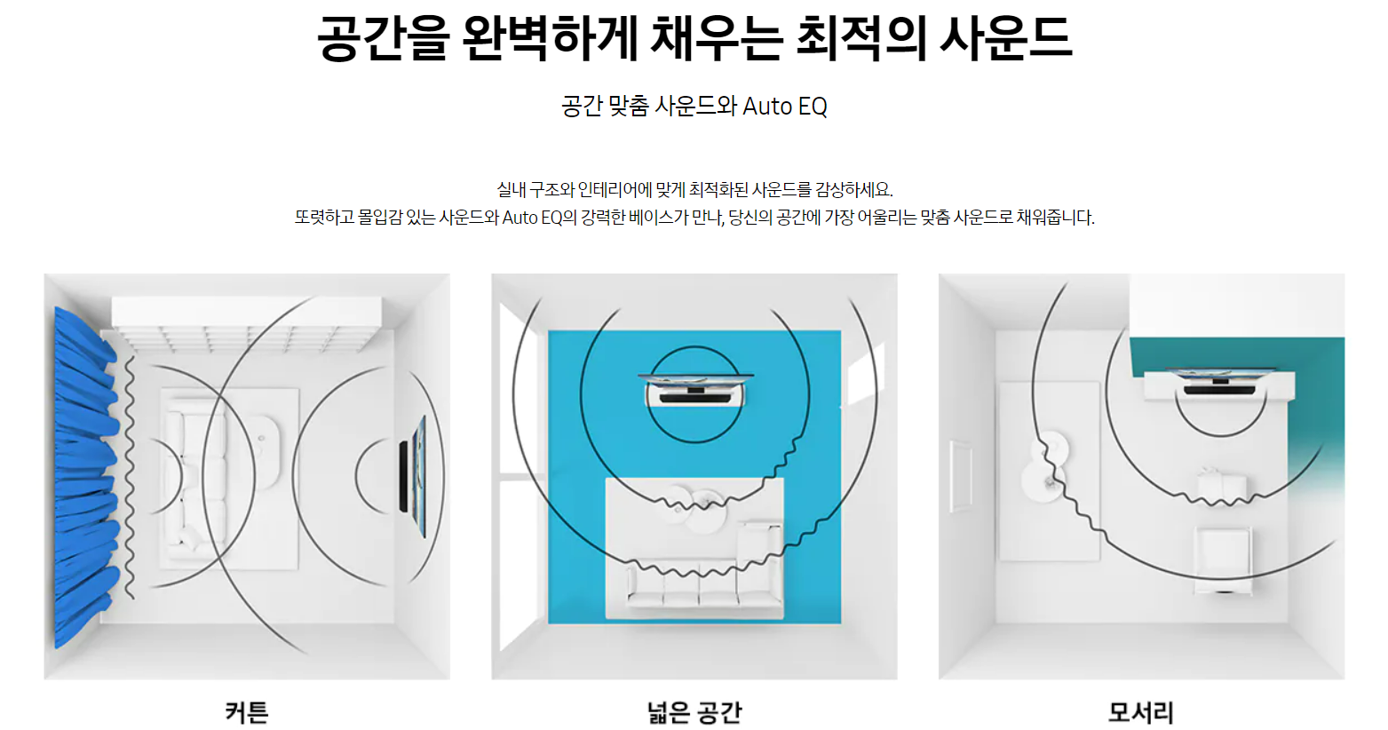삼성에서 하는 광고다. 공간을 가득 채우는건 맞는데 사운드12를 넘는순간 옆집에서 신고할것같은 크기다.