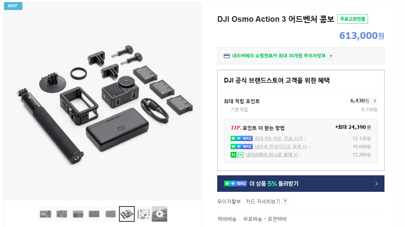 결론적으로 난 DJI Action3를 구매하기로 했다. 일단 쿠팡에서 70만원이상 6만원 할인쿠폰을 줬다. 주변기기 및 사려고했던 닌텐도 게임을 하나 구매하니 70만원이 넘어서 6만원 할인받았다. 정신승리로 10%할인받은 기분.