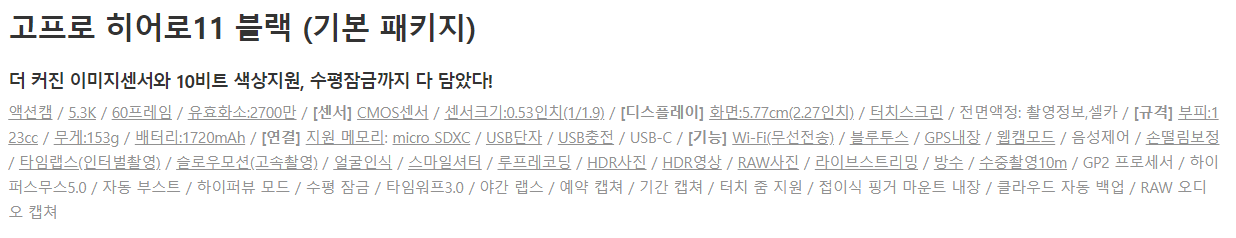 배터리3개+충전기+셀카봉+케이스 등등 포함하여 61만3천원! GoPro 11이랑 대충 12만원 차이가 난다.