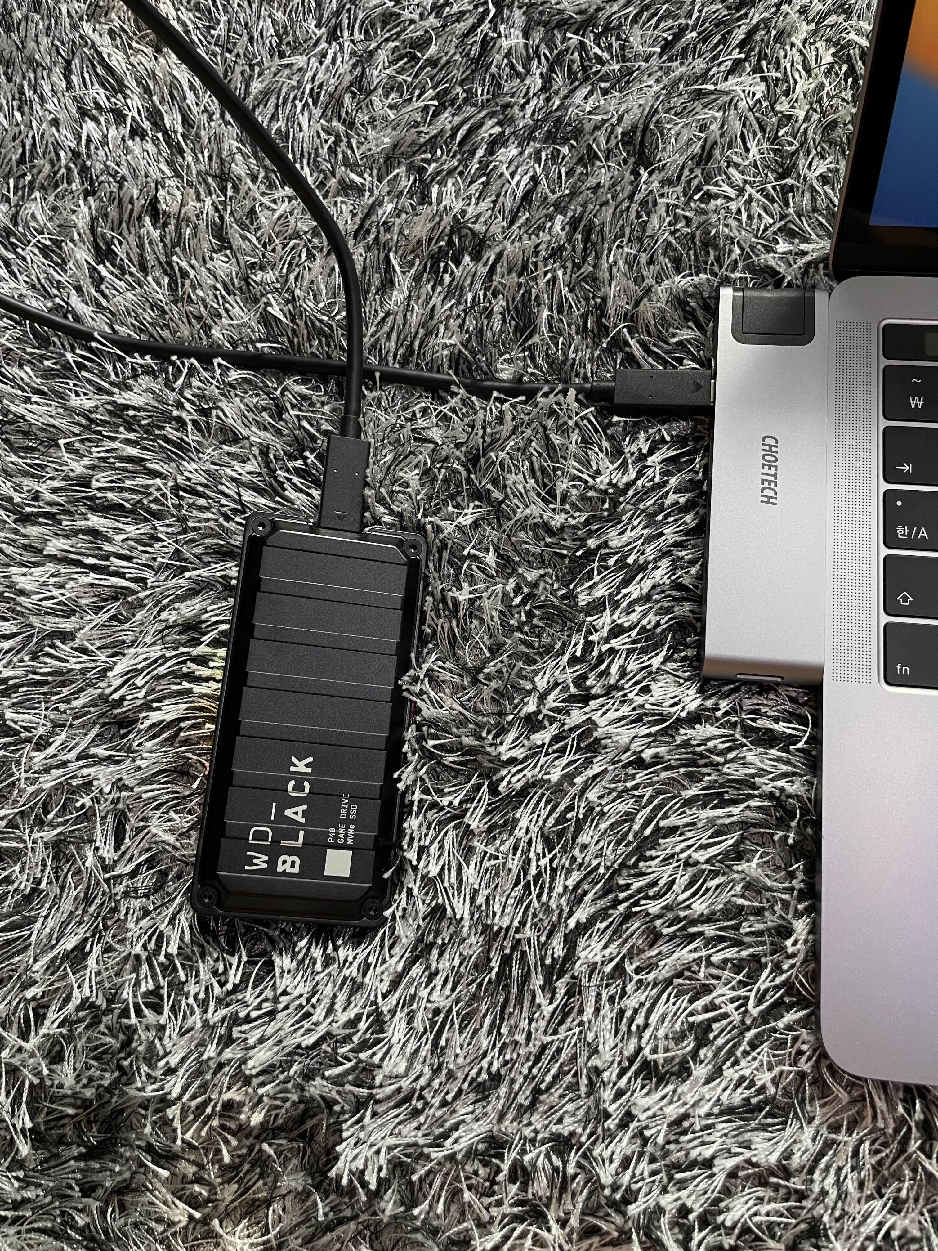 먼저 이번에 구매한 WD Black P40 외장 SSD의 속도를 맥북 기본포트로 측정해보았다.