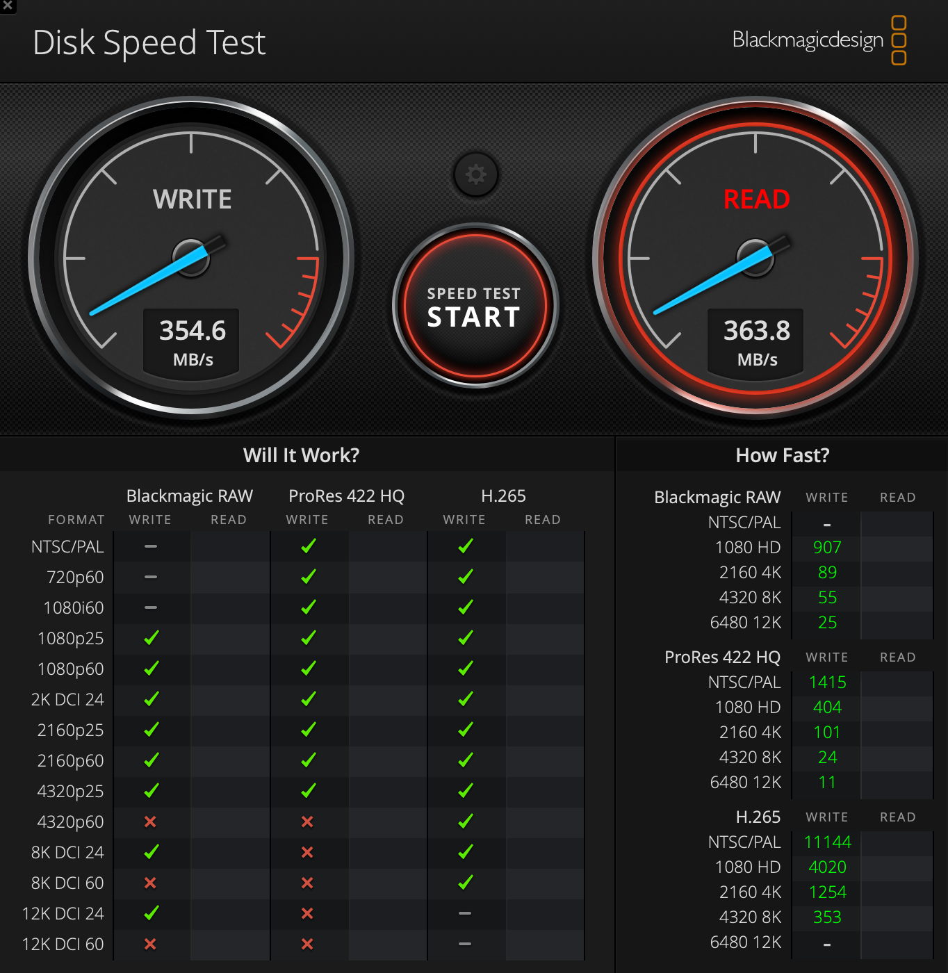 USB 3.0의 이론상 최대 속도는 5Gbps=약 625MB/s지만 실제론 354.6MB/s정도가 나왔다.