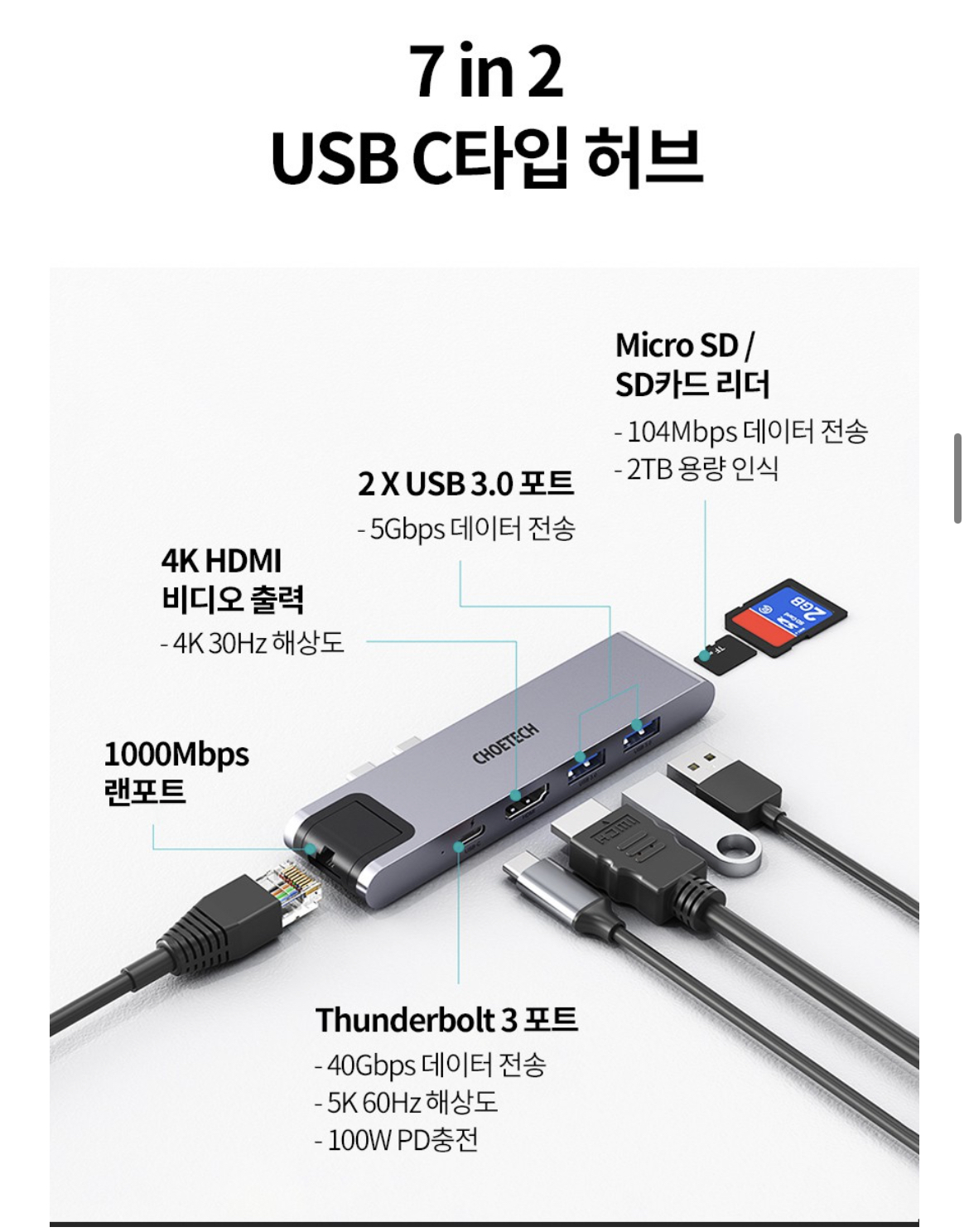 7in2 C타입 멀티포트 USB 허브 : CHOETECH