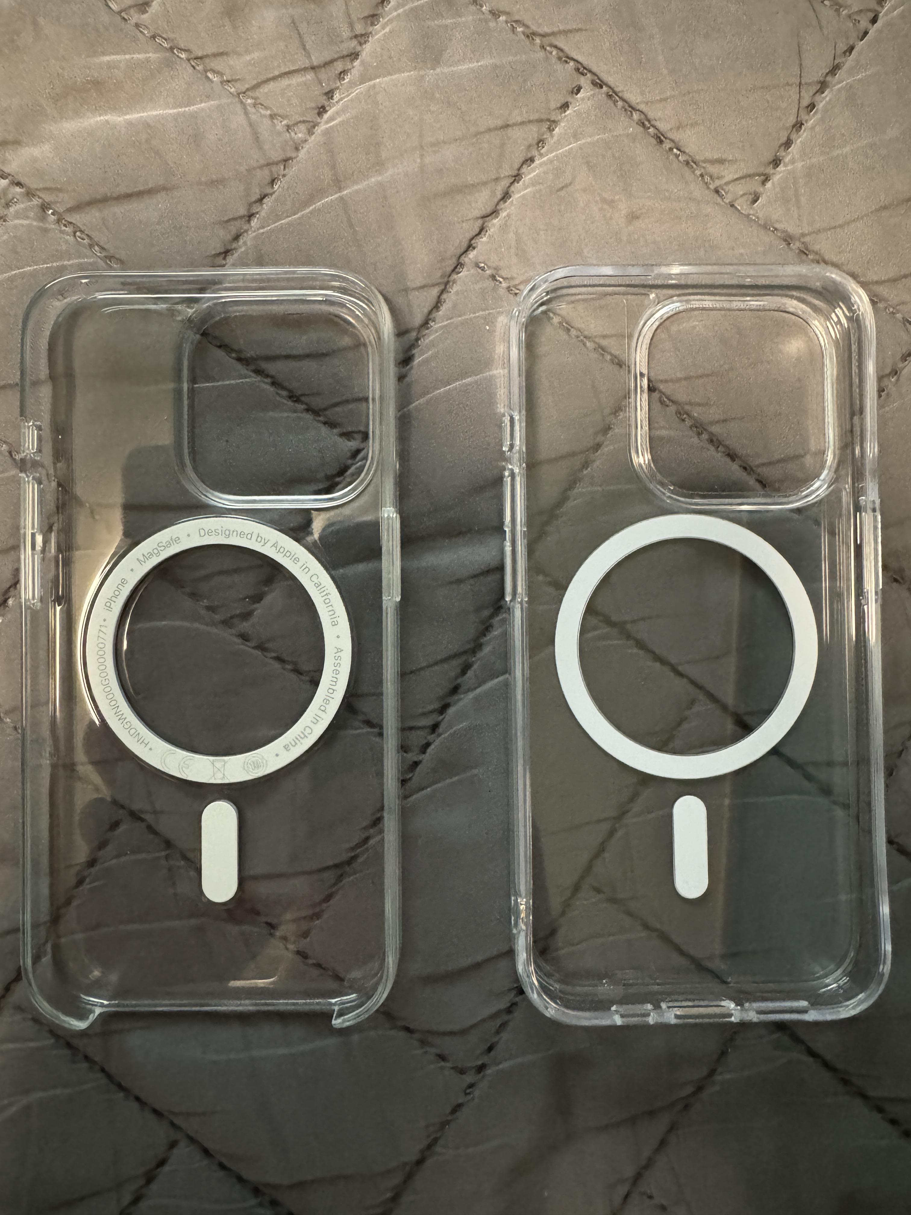 애플 정품과 비교해보면 일단 맥세이프 디자인이 다릅니다. 애플는 동글동글하고 입체적인 느낌이면 케이안은 평면적 느낌입니다. 개인적으론 둥글둥글한 느낌의 정품케이스 디자인이 더 제 취향입니다.