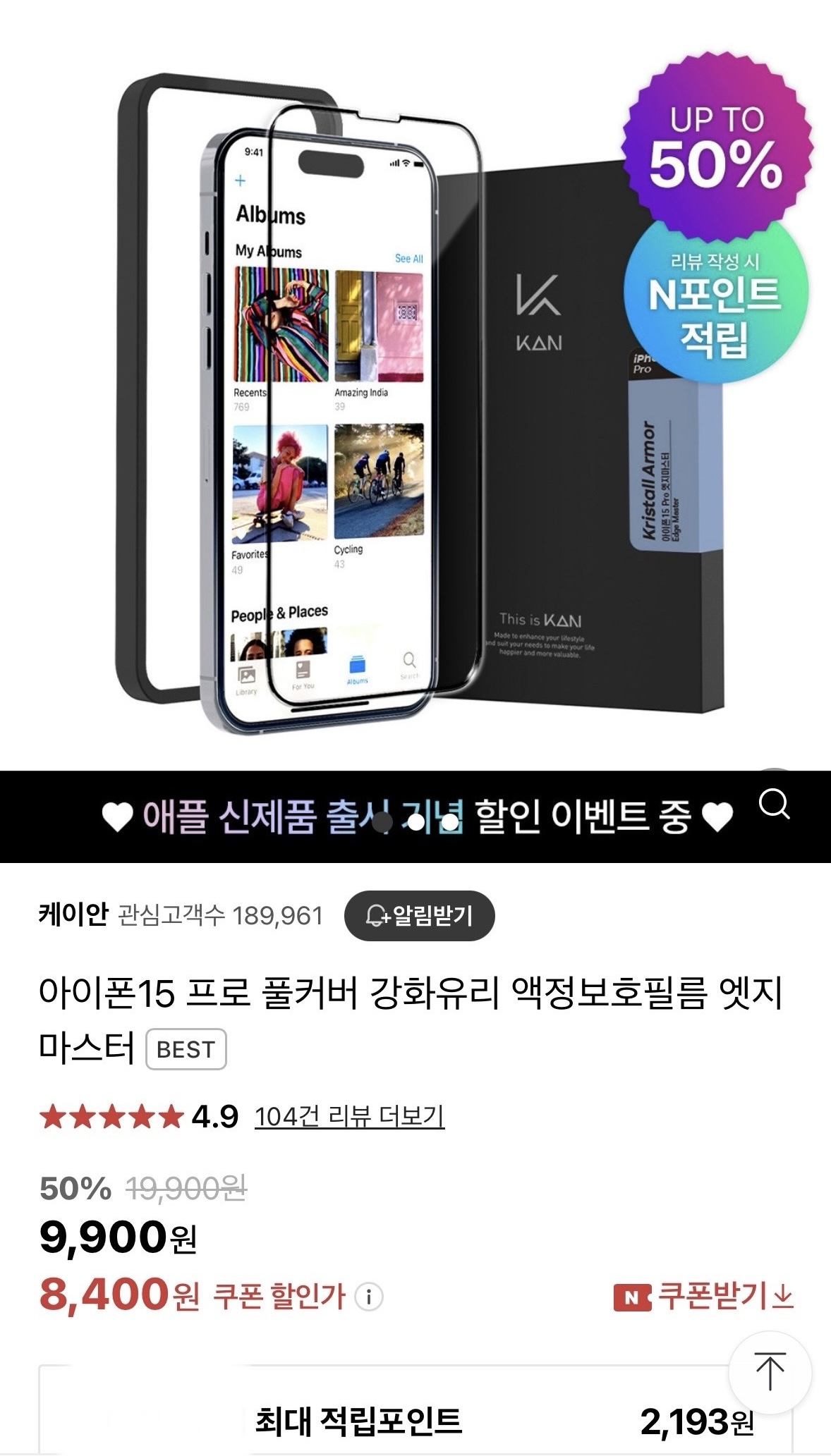 네이버 기준으로 가격은 8400원, 배송비 2500원, 포인트 적립 2193원으로 실구매가 약 8700원으로 구매 가능합니다! 케이스랑 같이 구매하시면 배송비도 아끼고 좋을 것 같아요.
